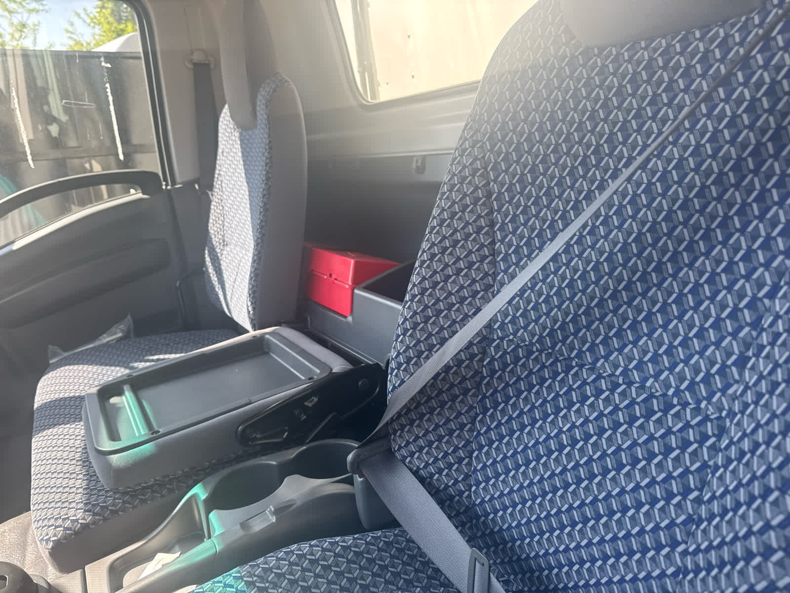 - Seat, front high back bucket driver and passenger tricoat cloth covered reclining high back driver seat with single two occupant fold down passenger seat (STD)