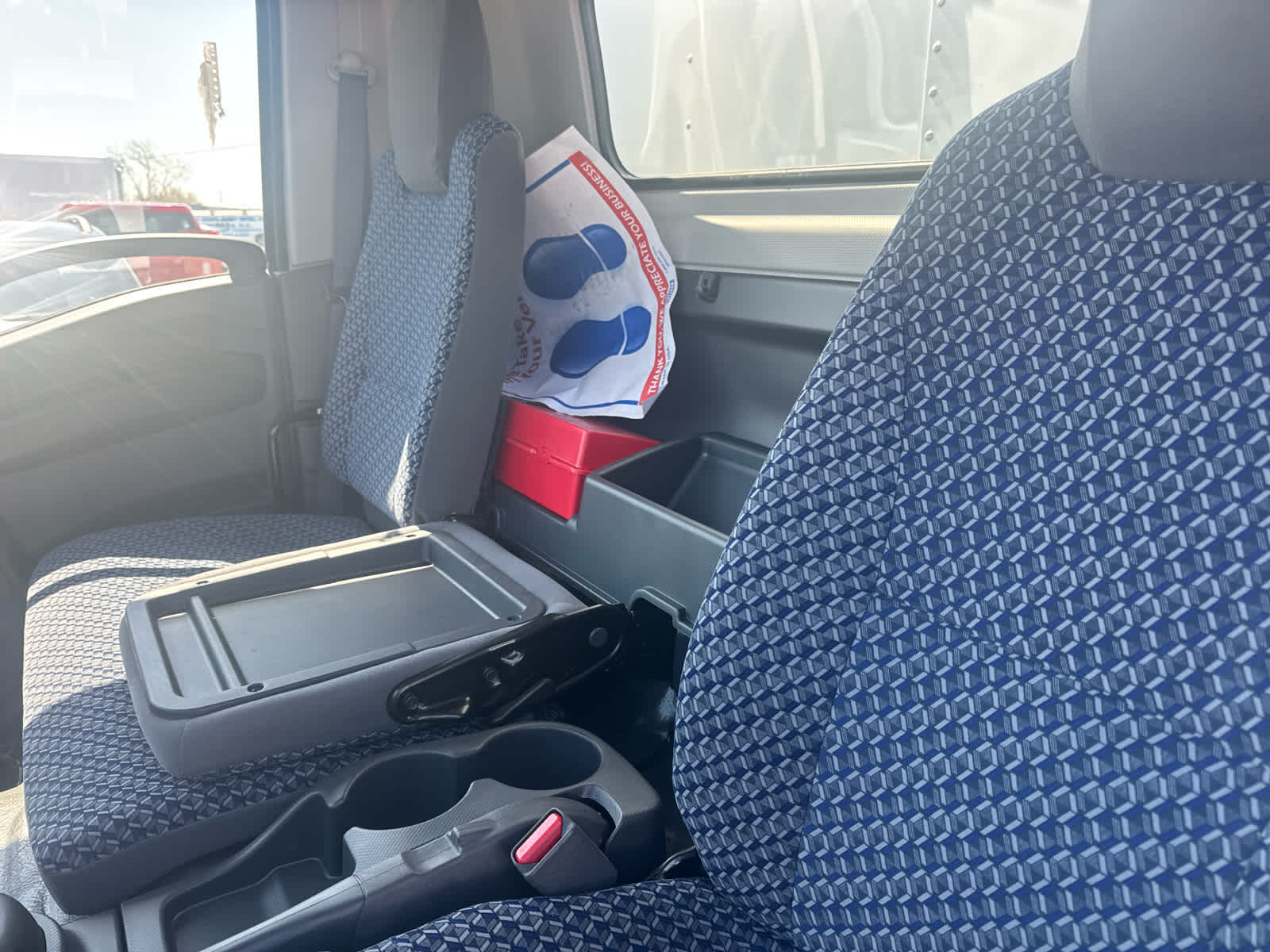 - Seat, front high back bucket driver and passenger tricot cloth covered reclining high back driver seat with single two-occupant fold down passenger seat (STD)