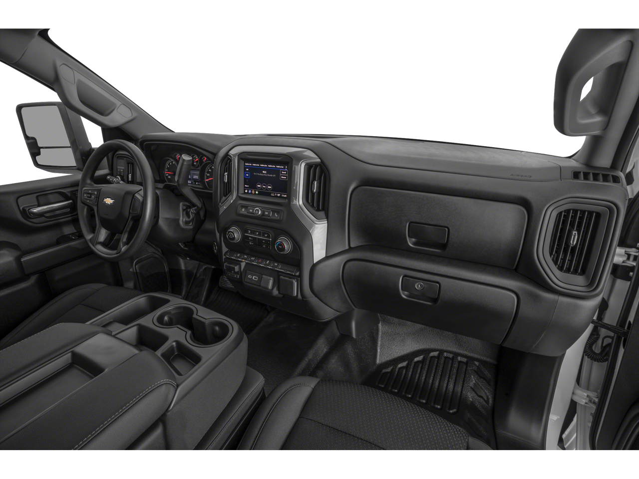 MIRRORS, OUTSIDE POWER-ADJUSTABLE VERTICAL TRAILERING WITH HEATED AND AUTO-DIMMING UPPER GLASS lower convex mirrors, turn signal indicators, puddle lamps, (U12) perimeter lighting, auxiliary lighting, power folding/manual extending (extends 3.31" [84.25mm]) Includes (DD8) auto-dimming rearview mirror. WT CONVENIENCE PACKAGE includes (QT5) EZ Lift power lock and release tailgate, (AKO) tinted windows, (C49) rear-window defogger, (DBG) power trailer mirrors with heated upper glass and manual extending/folding, WHEELS, 17" (43.2 CM) MACHINED ALUMINUM, GLASS, DEEP-TINTED, AUDIO SYSTEM, CHEVROLET INFOTAINMENT 3 SYSTEM 7" diagonal HD color touchscreen, AM/FM stereo, Bluetooth® audio streaming for 2 active devices, voice command pass-through to phone, Wireless Apple CarPlay® and Wireless Android Auto® compatibility (STD), ENGINE, 6.6L V8 with Direct Injection and Variable Valve Timing, gasoline, (401 hp [299 kW] @ 5200 rpm, 464 lb-ft of torque [629 N-m] @ 4000 rpm) (STD), TRANSMISSION, ALLISON 10-SPEED AUTOMATIC (STD).
