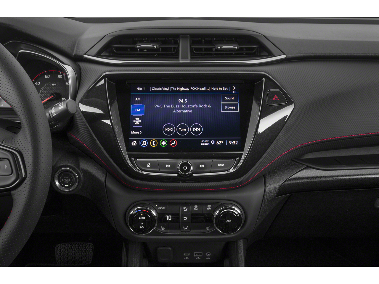SUN AND LIFTGATE PACKAGE includes (C3U) power, dual-pane, panoramic sunroof and (TC2) power, programmable hands-free liftgate with LED logo projection, TECHNOLOGY PACKAGE includes (IOS) Chevrolet Infotainment 3 Plus system, (U2L) HD Radio, SiriusXM with 360L, (UQA) Bose premium 7-speaker system, (MCR) memory card receptacle, (K4C) Wireless Charging, (KSG) Adaptive Cruise Control, (UVB) HD Rear Vision Camera, (UDD) enhanced, 4.2" diagonal multi-color display Driver Information Center and (T4L) LED headlamps, CONVENIENCE PACKAGE includes (C68) automatic climate control air conditioning, (UIJ) 8" diagonal color touchscreen display, (USS) one type-A and one type-C charging only USB ports, (KI6) 120-volt power outlet, (DD8) inside rearview auto-dimming mirror and (DMS) driver and front passenger illuminated vanity mirrors, covered, sliding visors, DRIVER CONFIDENCE PACKAGE includes (UKC) Lane Change Alert with Side Blind Zone Alert, (UFG) Rear Cross Traffic Alert and (UD7) Rear Park Assist (Vehicles built prior to January 10, 2022 include Rear Park Assist. Certain vehicles built on or after January 10, 2022, will be forced to include (00Y) Not Equipped with Rear Park Assist, which removes Rear Park Assist. See dealer for details or the window label for the features on a specific vehicle.), AUDIO SYSTEM, CHEVROLET INFOTAINMENT 3 PLUS SYSTEM 8" diagonal HD color touchscreen, AM/FM stereo, Bluetooth® audio streaming for 2 active devices, Apple CarPlay® and Android Auto® capable, voice recognition, in-vehicle apps, cloud connected personalization for select infotainment and vehicle settings. ENGINE, ECOTEC 1.3L I3 TURBO DOHC SIDI WITH VARIABLE VALVE TIMING (VVT) (155 hp [115 kW] @ 5600 rpm, 174 lb-ft torque [236 N-m] @ 1600 rpm) (STD), TRANSMISSION, 9-SPEED AUTOMATIC (STD).